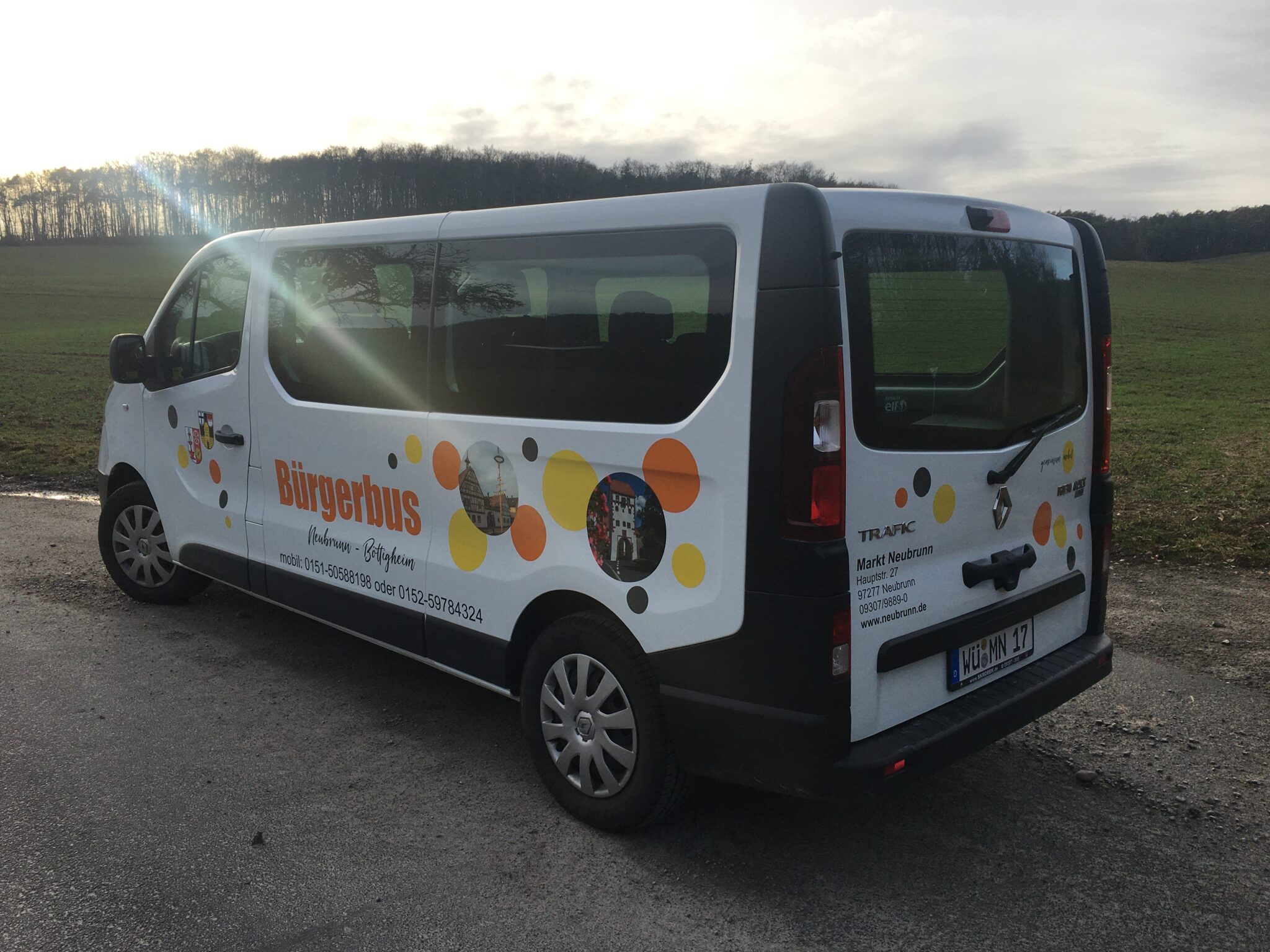 Der Bürgerbus ist unter 0151 – 50 58 81 98 (Neubrunn) oder 0152 – 59 78 43 24 (Böttingheim) erreichbar.
