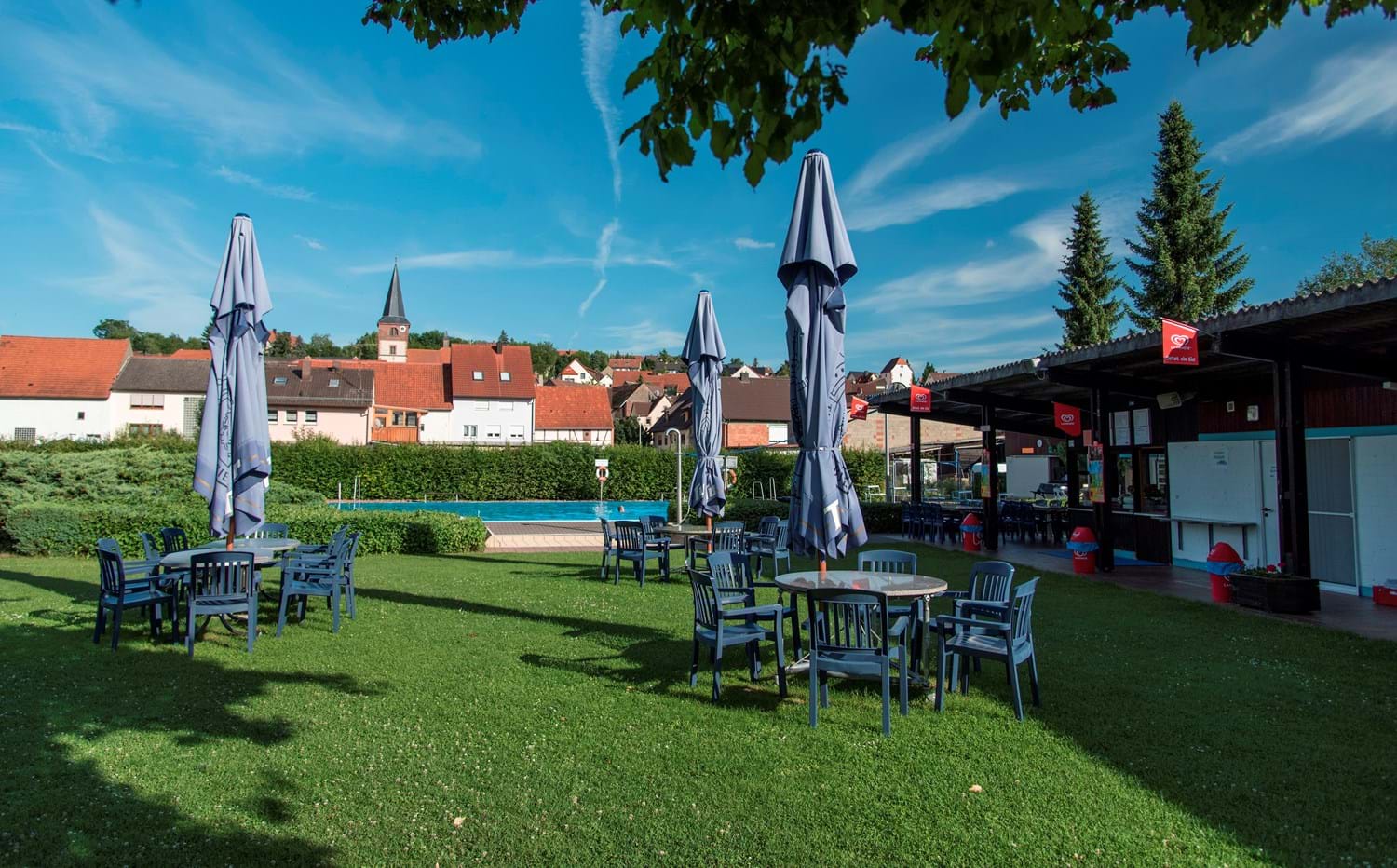 Das gesamte Gelände mit Liegewiesen, Kiosk und Sanitärgebäude hat eine Fläche von fast 8.000 m².